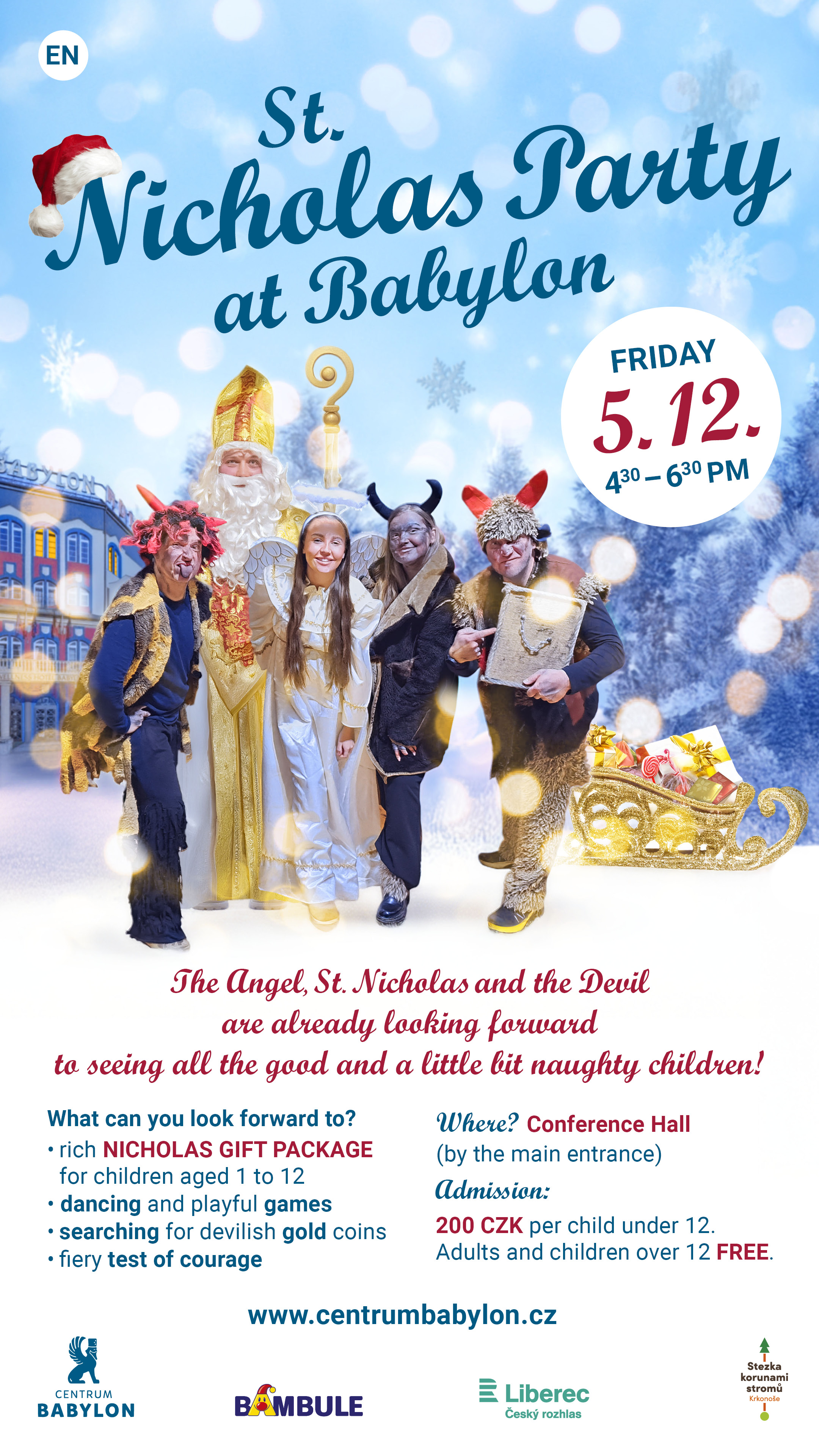 we warmly invite you to the traditional St. Nicholas celebration, which will take place on Friday, December 5, 2025, from 4:30 PM to 6:30 PM in the Conference Hall (at the main entrance of CENTRUM BABYLON).